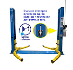 г/п. до 4 тонн, предназначен для подъема легковых автомобилей, внедорожников, пикапов и легких грузовиков. Снятие и установка на «стопора» с пульта управления (электростопора). Максимальное расстояние между подхватами: 2550 мм. Высота подъема лап (с подхватами): 1800 (1990) мм. Длина задних лап: 780-1200 мм. Длина передних лап: 780-1200 мм. Вес: 700 кг.