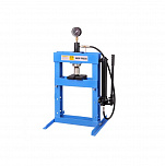 Настольный. Занимает мало места. Основные функции выполняет. Для гаража. Гидравлический, ручной, сборно-разборный. Гидроцилиндр с пуансоном имеет возможность перемещения по всей ширине рамы. Для запрессовки деталей механизмов. Усилие 10 тонн. Интервал пуансона 135 мм. Рабочее окно: 400 x 350 мм.