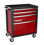 4 ящика. Нагрузка на тележку 220кг. Корпус сварной. На боковых стенках корпуса выполнена квадратная перфорация для установки крючков, держателей и других аксессуаров. Ящики на шариковых телескопических направляющих полного выдвижения. Обеспечен свободный и плавный ход ящиков даже при полной загрузке. Тележка оснащена системой антиопрокидывания новой конструкции, которая блокирует открывание ящиков. Габаритные размеры тележки с учетом колес, лотка и ручки (ВхШхГ), не более: 800 х 780 х 490 мм. Вес: 42,2 кг.