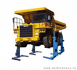 г/п 30 тонн. Четырехстоечный. Подкатной. Электрогидравлический. В подъемнике применена электронная синхронизация подъема и опускания подхватывающих кареток. Подъем за колеса, комплектуется 2 страховочными подставками. Для проведения ремонта грузовой карьерной, дорожной, строительной техники.
