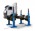 г/п. 10 тонн. Четырехстоечный. Электромеханический. Для ремонта грузовых автомобилей отечественного и импортного производства и автобусов на любой ровной площадке. Привод червячный редуктор, с концевыми выключателями нажимного действия, ограничивающими ход каретки. По отдельному заказу комплектуется установочными рамами. Поставляется в 2 вариантах Стандарт (в помещение) и ТЗ (Для эксплуатации на улице).