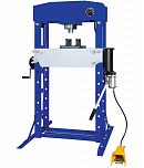 Усилие 50 тонн. Пресс гидравлический. Привод: ручной. Две скорости подачи пуансона. Первая скорость для быстрой подачи штока к рабочей поверхности, вторая (медленно) для выпрессовки. Применяется для запрессовки подшипников, деталей машин и механизмов в гаражах, автосервисах и СТО.