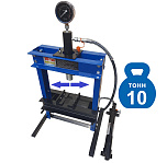 Усилие 10 тонн. Настольный. Ручной. Для запрессовки подшипников, деталей машин, втулок и т.п. в автосервисе, мастерских по ремонту лодочных моторов, велосипедов и т.п. Гидроцилиндр с пуансоном имеет возможность перемещения по всей ширине рамы. Контроль усилия – визуально по шкале манометра. Интервал пуансона 135 мм. Рабочее окно: 400 x 350 мм.