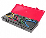 Набор губцевого инструмента (4 предмета) в прочном презентабельном боксе. В комплекте: утконосы прямые 8, утконосы с загнутыми губками 8", кусачки боковые (бокорезы), 7", пассатижи, 8". Изготовлены из хромомолибденовой стали, характеризуются высокой прочностью и жесткостью. Рукоятки выполнены из двухкомпонентного материала (ПП+термопластичный каучук), удобны в использовании.