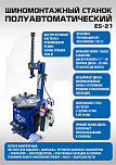 Полуавтоматический. Квадратный стол. Рекомендуется для постов со средней и высокой проходимостью. Для дисков: внешний 11÷21”, внутренний 12÷24”. Усилие отрыва покрышки 2500 кг. В комплекте: пистолет для подкачки шин + монтажка + пластиковые накладки на зажимные кулачки и головку + регулятор давления с влагоотделителем и манометром. Поставляем на 220В и 380В.