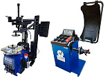 Комплект из автоматического шиномонтажного станка TS-3226А. Для дисков: 11÷24”. В комплекте: полноценная 3-й рука для работы с жесткой и низкопрофильной резиной RUNFLAT. + встроенный бустер 24 литра (взрывная подкачка) + пистолет для подкачки шин + монтажка + регулятор давления с влагоотделителем и манометром. + Proxy-8-3 автоматический балансировочный станок для колес с диаметром диска 9-28 дюймов, при ручном вводе до 30 дюймов и шириной до 20 дюймов. В комплекте: монитор SVGA + кожух с автозапуском + клещи + кронциркуль + пневмоприжим + набор конусов + лазерная навигация + электромагнитный тормоз + ультразвуковой датчик ширины.