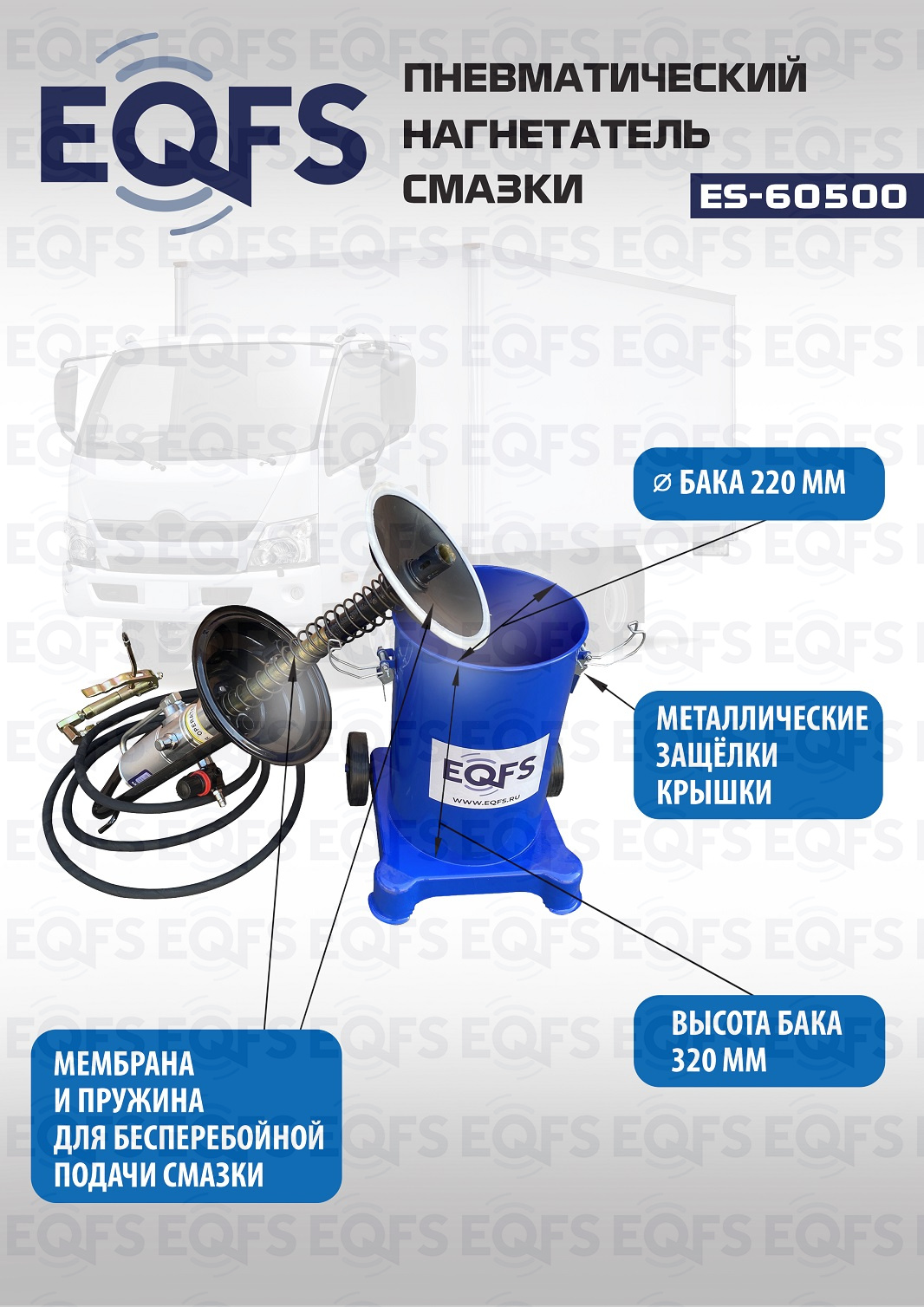 Технические особенности пневматический нагнетатель смазки ES-60500: