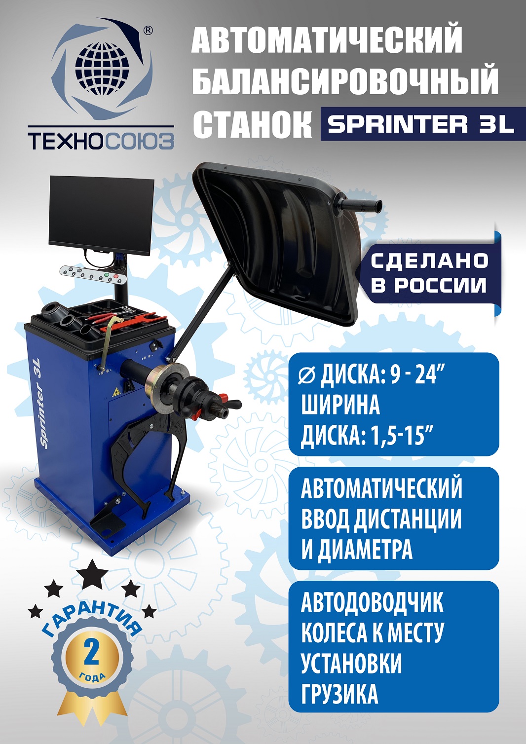 Балансировочный станок для колес легковых автомобилей S4 Sprinter 3L ПРОИЗВОДСТВО РФ. Автомат. LCD Монитор с понятным управлением. Автоматический и прямой ввод всех