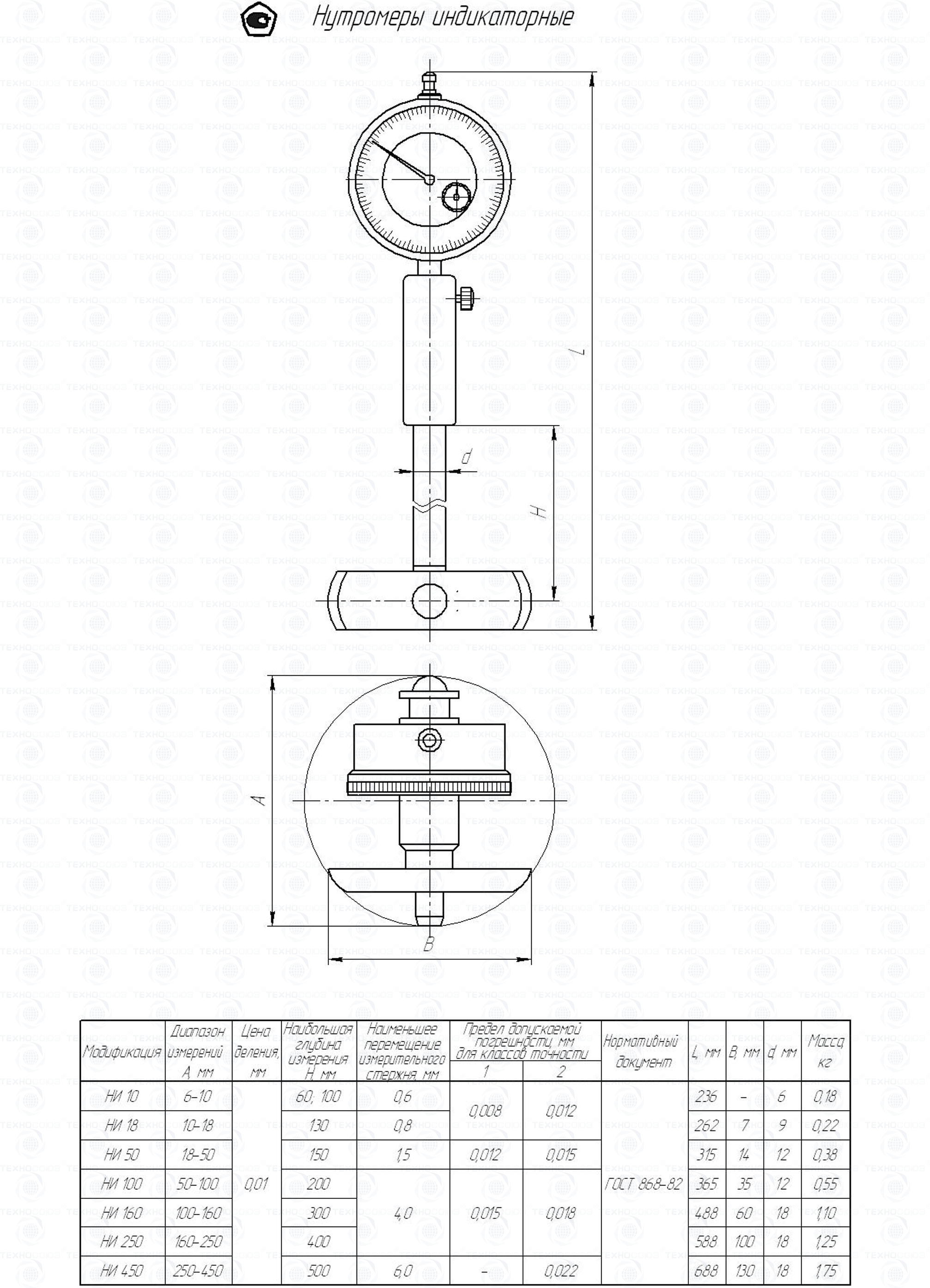 Нутромер индикаторный НИ-50 кл.2