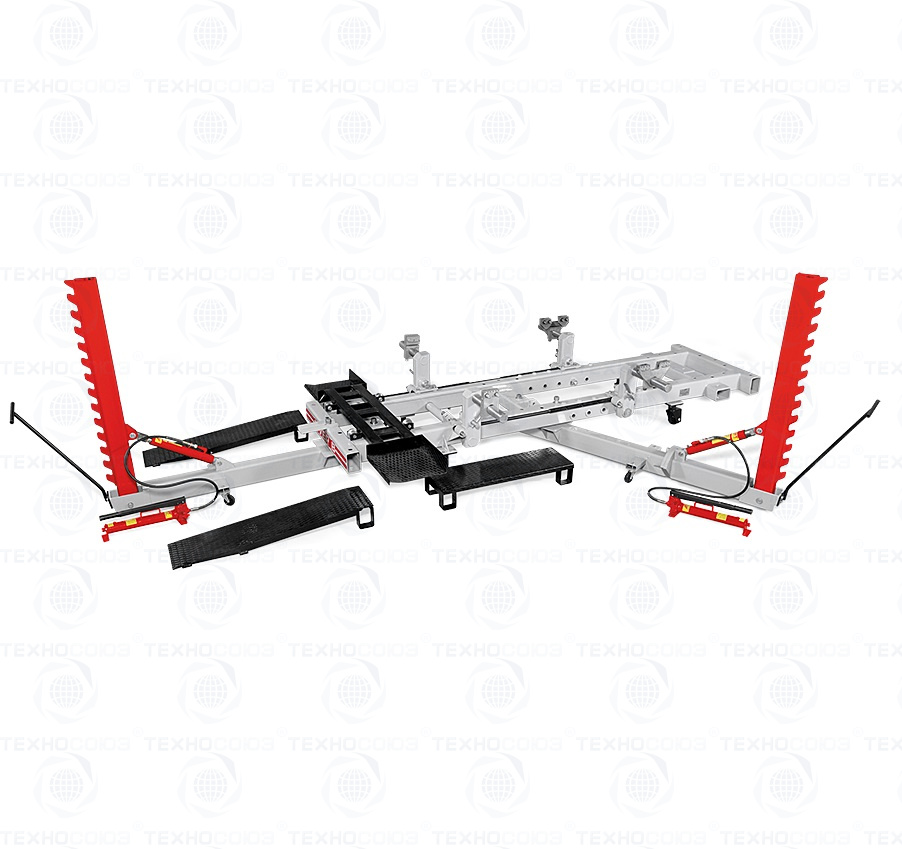 Два различных силовых устройства, каждое оснащено гидроцилиндром 10т. 2-х шарнирное силовое устройство - удобно для создания противовектора тяги и дополнительной фиксации кузова автомобиля на стапеле. 3-х шарнирное силовое - более гибкий подход к выбору направления вектора тяги. Силовые устройства могут устанавливаться в 7 посадочных мест, при этом общее число положений силового устройства достигает 140 вариантов.