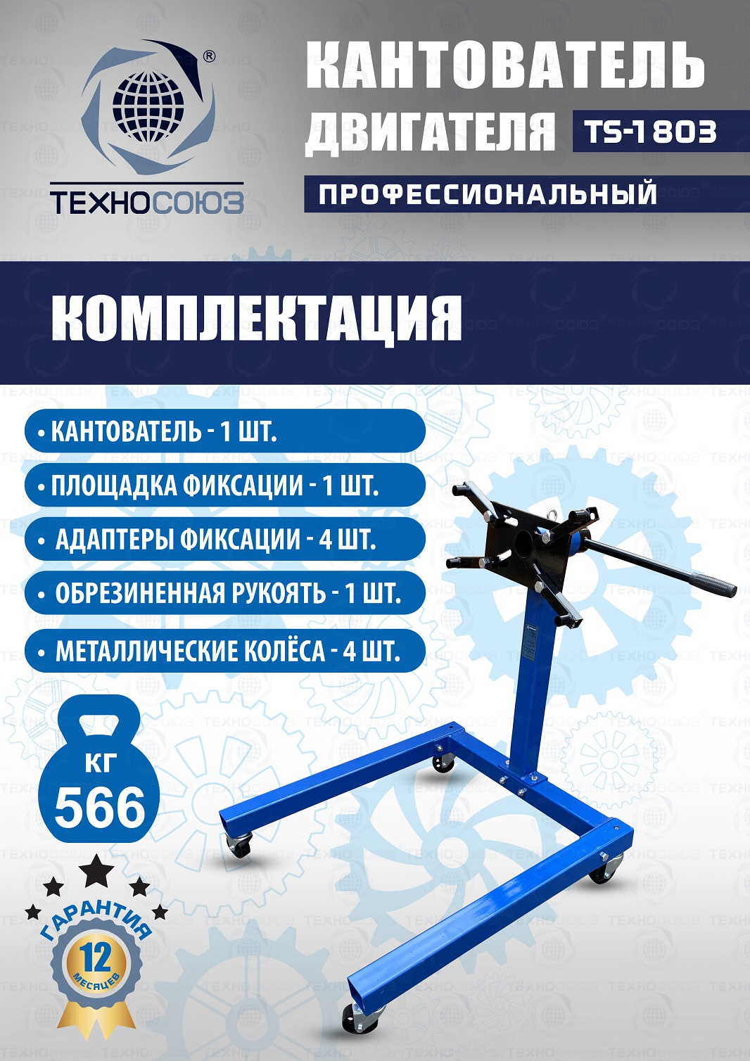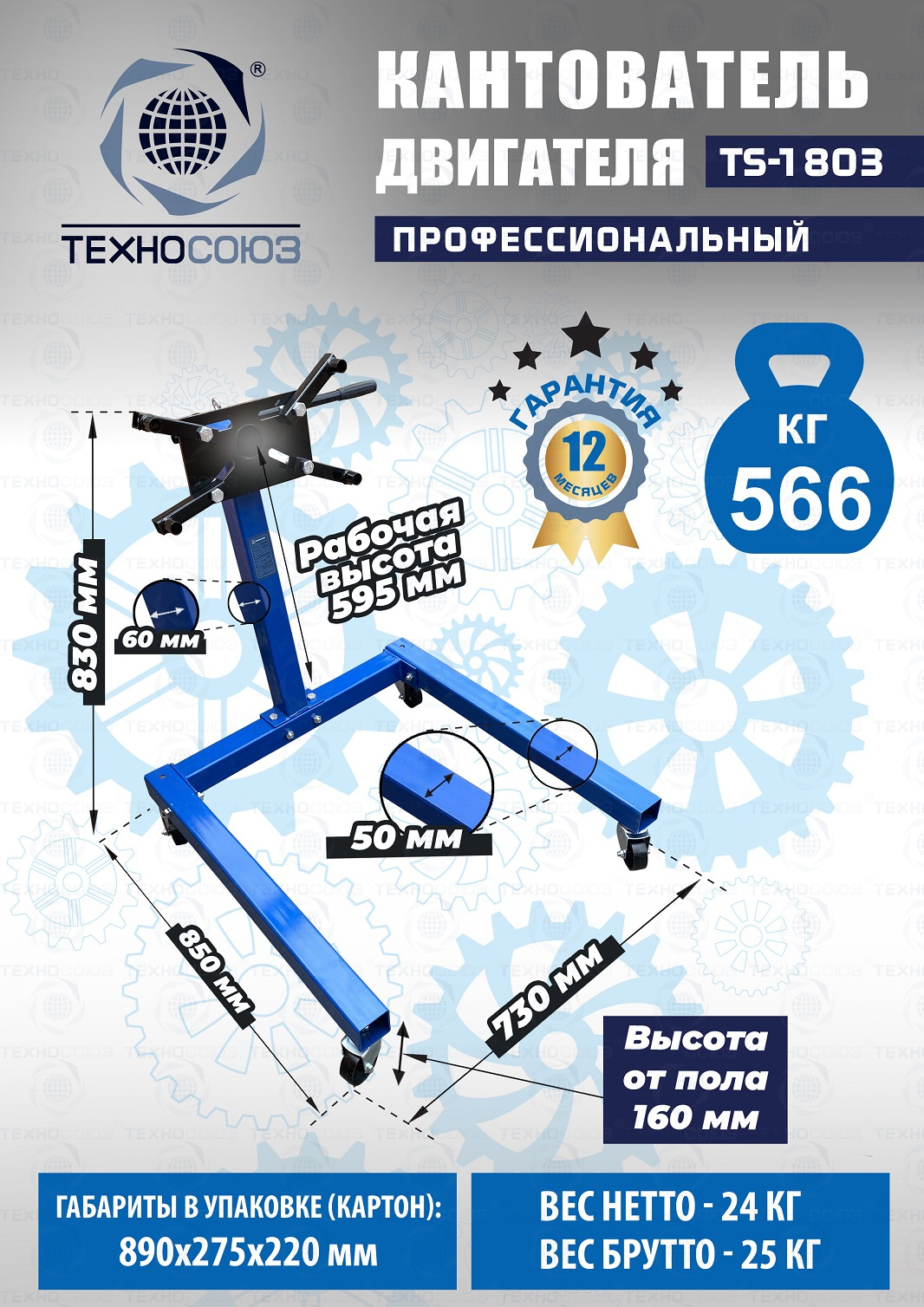 Стенд для сборки и разборки цилиндропоршневой группы 2, 4-х и 6 цилиндровых ДВС без навесного оборудования г/п. до 566 кг. Вращение двигателя 360°. 4 регулируемых кронштейна для удобства вывешивания и обслуживания ДВС легковых авто. оснащен П - образной рамой с поперечной и 4-мя колесами.